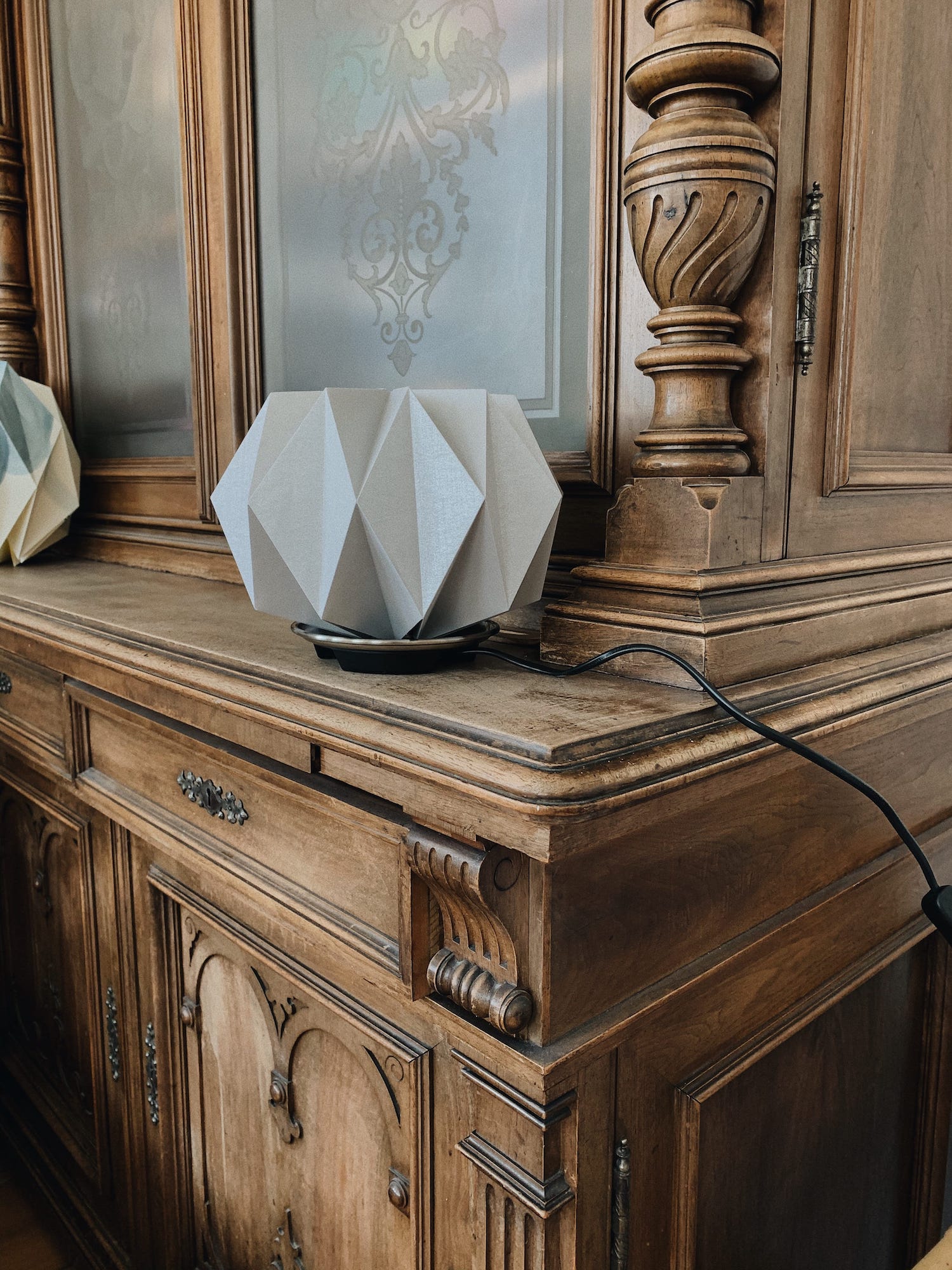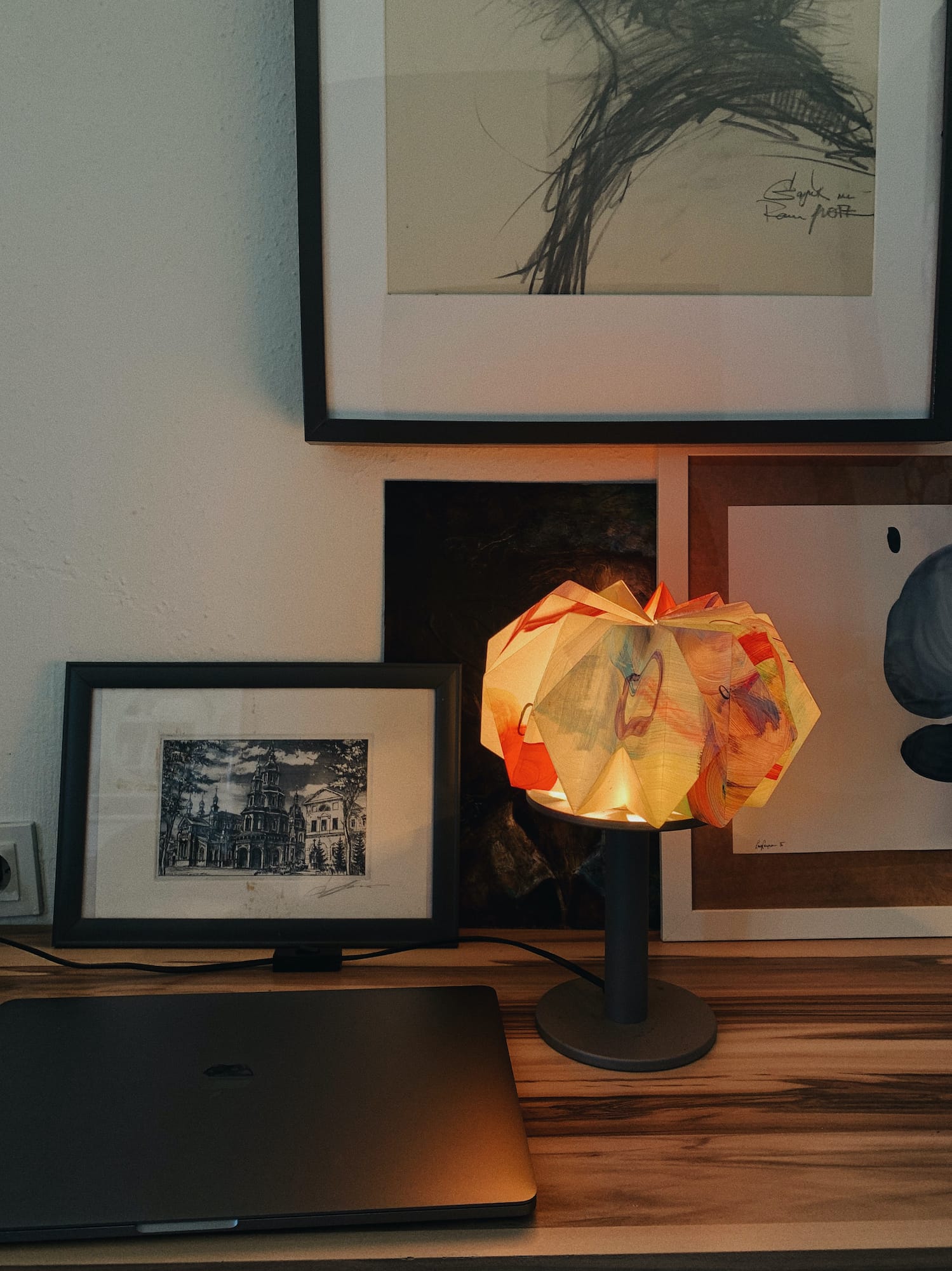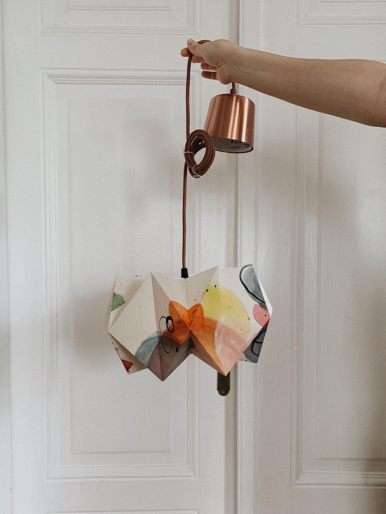 Hey I’m a handmade Lamp, made out of paper. I exist in different sizes and various papers. I am unique and can be made after your liking: colours, textures, size. Special requests? Contact Lara per mail.